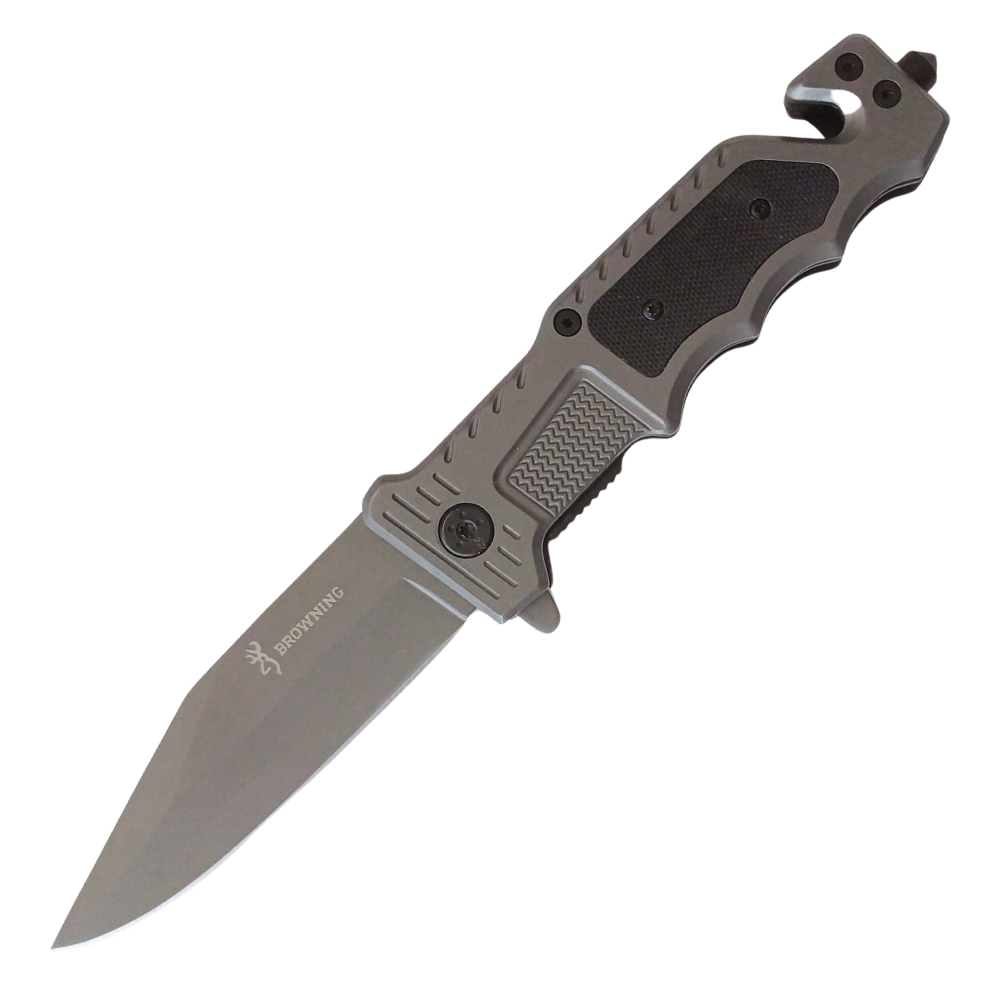 Medium Browning Metal Handgrip Folding Knife (With glass breaker, safety belt ripper & spring open function)