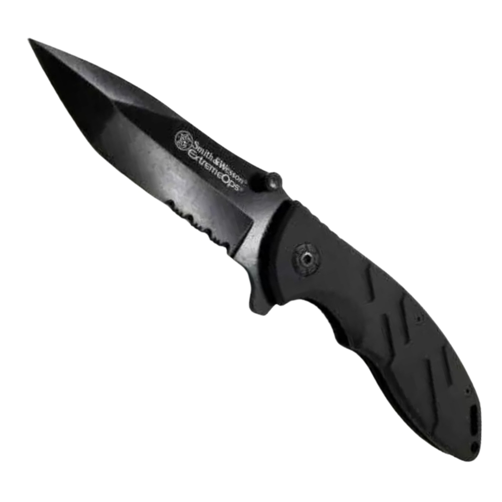 Medium Smith & Wesson Black Folding Knife (With spring open function)